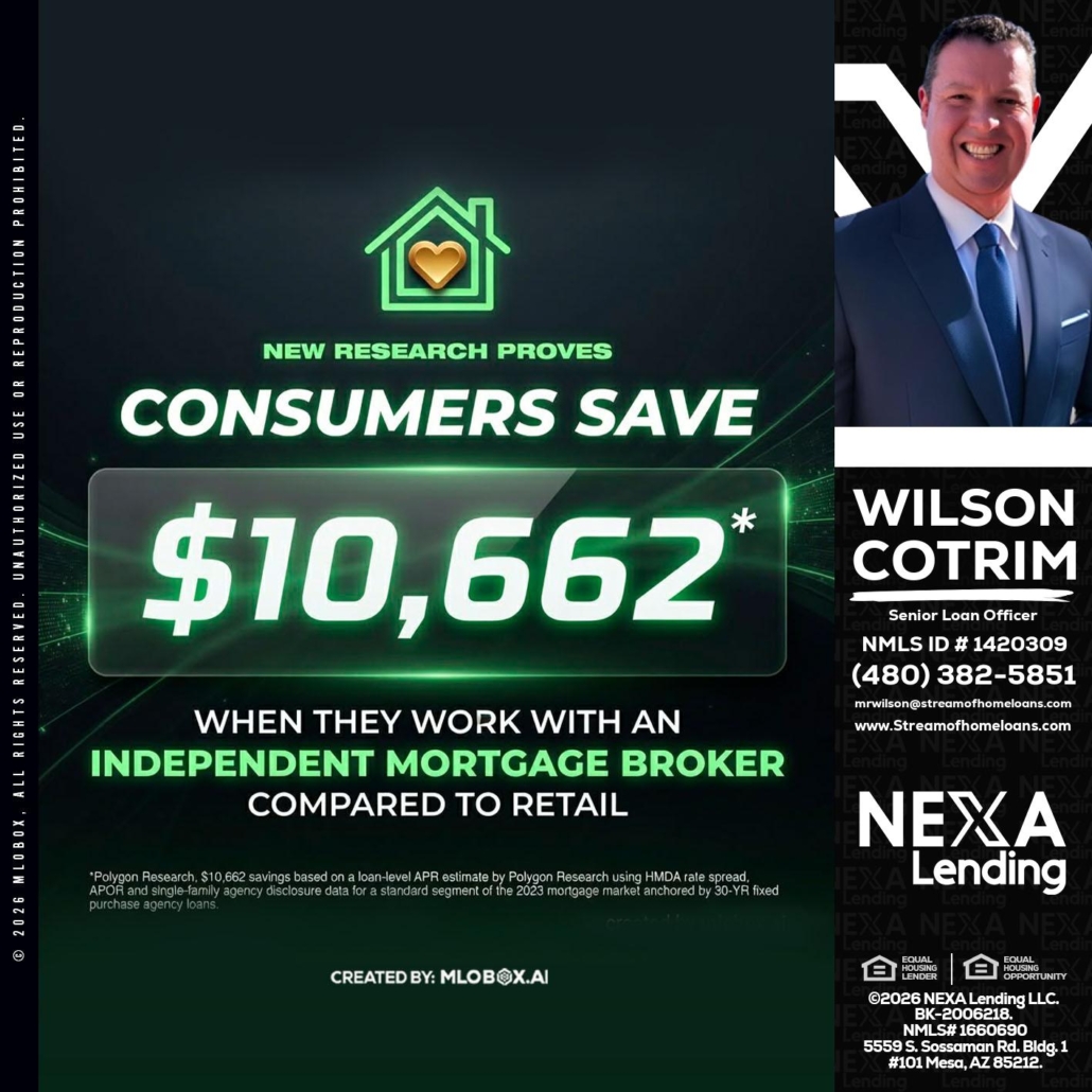 10,662 - Wilson Cotrim -Senior Loan OfficerHi, my name is Wilson Cotrim. I’m a Loan Officer with NEXA Lending LLC., offering personalized mortgage solutions, fast customized quotes, great rates and service with integrity.