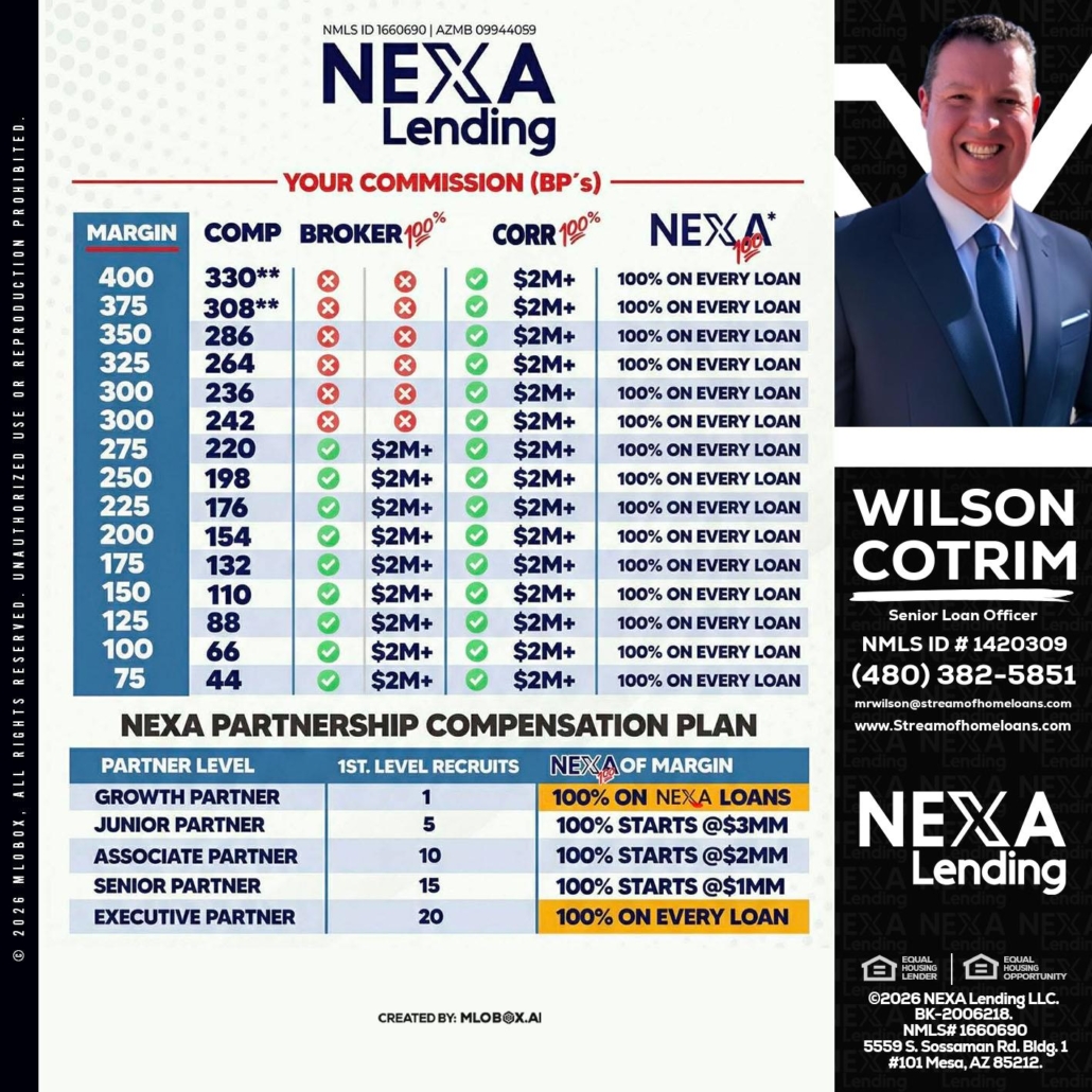 COMP - Wilson Cotrim -Senior Loan OfficerHi, my name is Wilson Cotrim. I’m a Loan Officer with NEXA Lending LLC., offering personalized mortgage solutions, fast customized quotes, great rates and service with integrity.