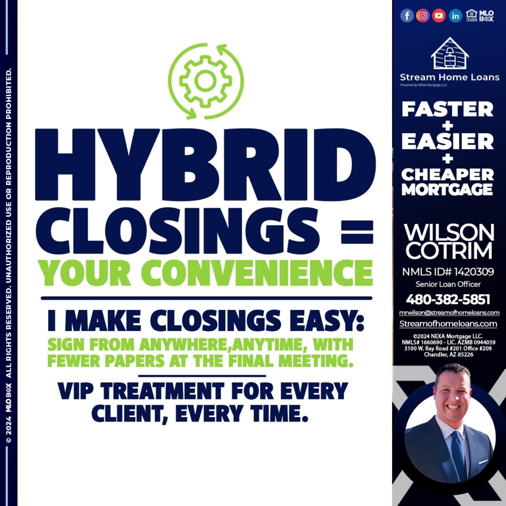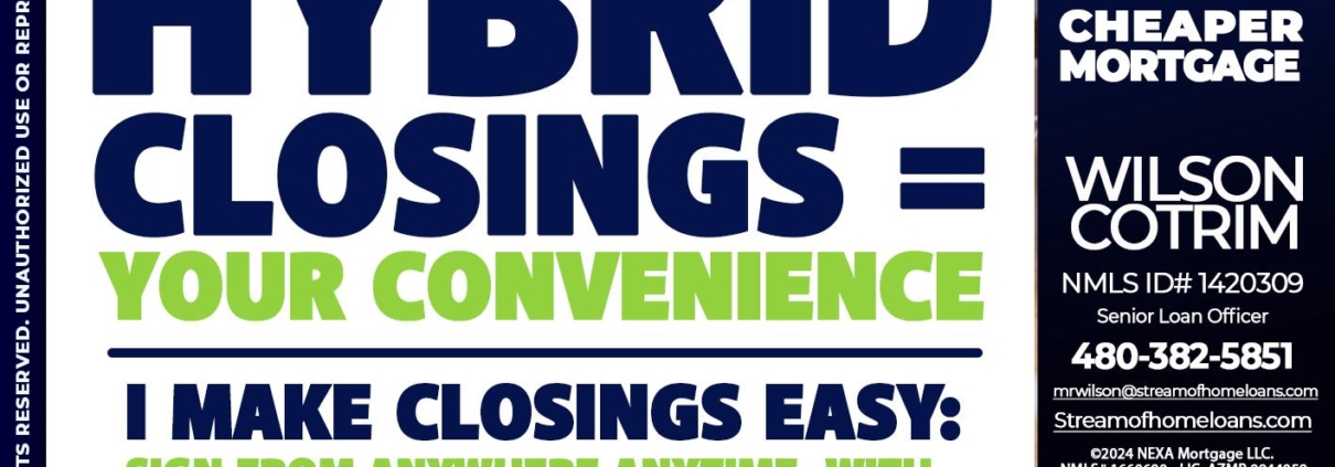 HYBRID CLOSINGS - Wilson Cotrim -Senior Loan OfficerHi, my name is Wilson Cotrim. I’m a Loan Officer with NEXA Mortgage LLC., offering personalized mortgage solutions, fast customized quotes, great rates and service with integrity.
