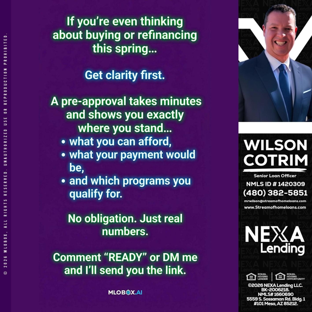 Hi, my name is Wilson Cotrim. I’m a Loan Officer with NEXA Lending LLC., offering personalized mortgage solutions, fast customized quotes, great rates and service with integrity.