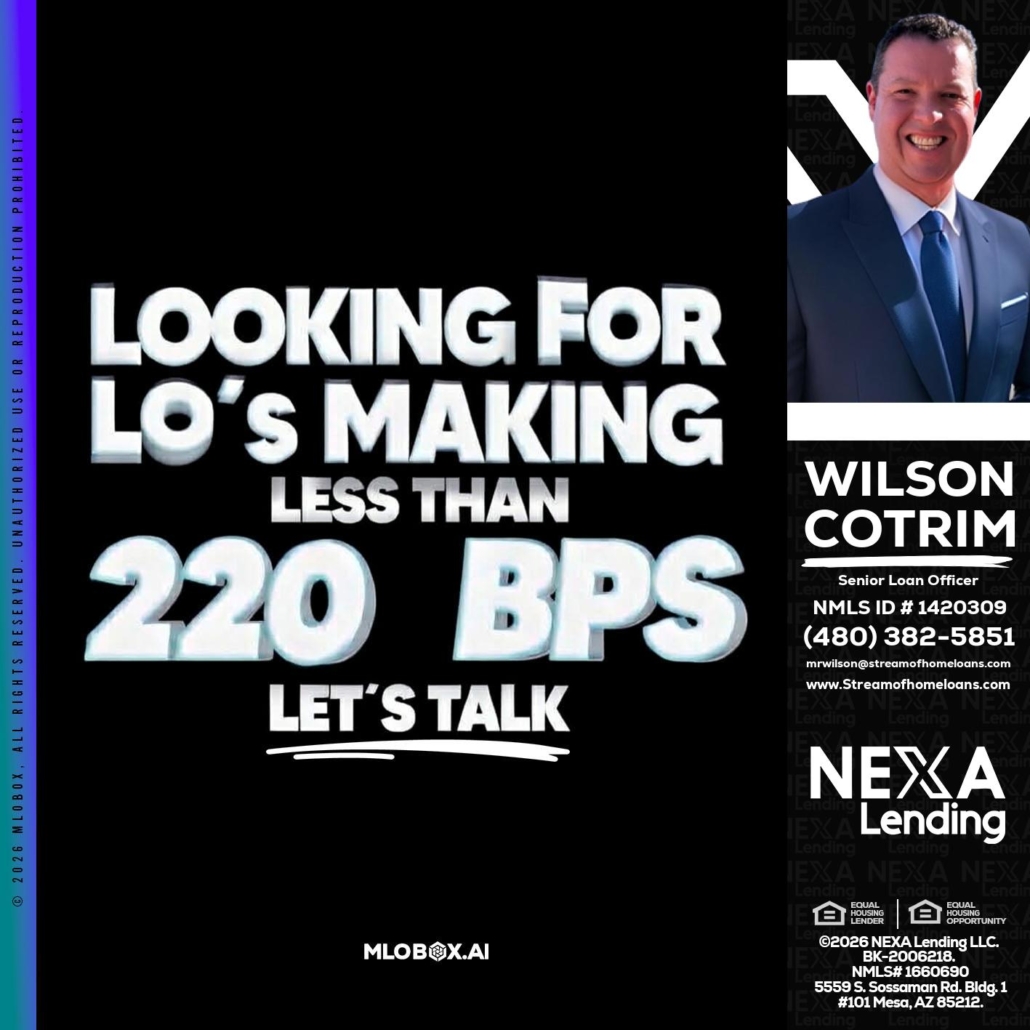 Hi, my name is Wilson Cotrim. I’m a Loan Officer with NEXA Lending LLC., offering personalized mortgage solutions, fast customized quotes, great rates and service with integrity.