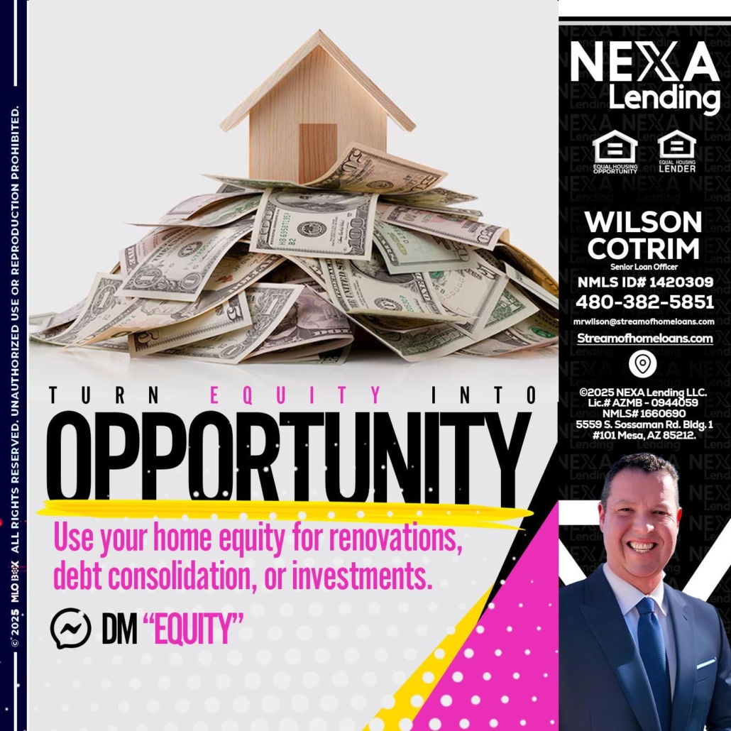opportunity - Wilson Cotrim -Senior Loan OfficerHi, my name is Wilson Cotrim. I’m a Loan Officer with NEXA Lending LLC., offering personalized mortgage solutions, fast customized quotes, great rates and service with integrity.